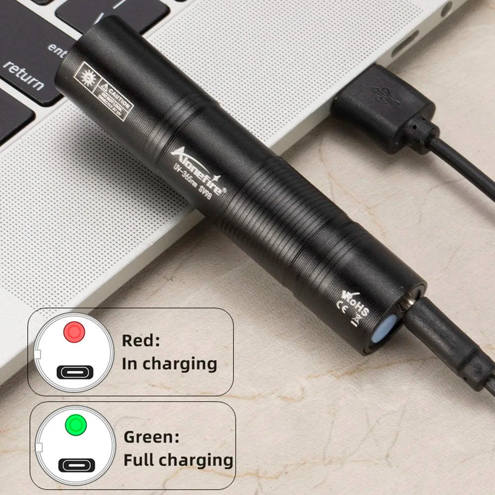 The Ultraviolet flashlight can be used as pet (dog/cat) urine detector/scorpion finder/fluorescent/detector/currency/license/card/ passport authenticating/oil stains/leakage detector/ore/antique identification/UV glue curing/ect.