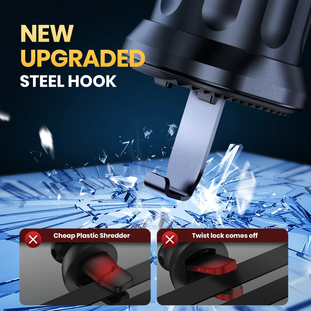 [Safe and Stable] This car phone holder with the latest hook clip design, can be securely attached to the air vents. And holds your phone firmly, even on turns, roads with potholes, speed bumps and bumpy roads. You don't have to worry about your phone falling off when driving.