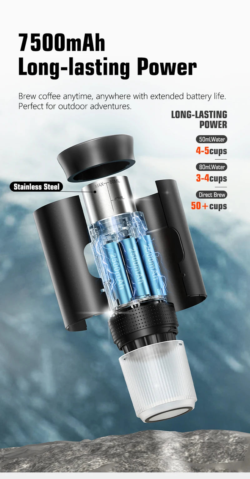 【Portable and Convenient】The portable espresso machine is suitable for many occasions, convenient and easy to carry, and can be brewed directly.Water can be heated directly for extraction.