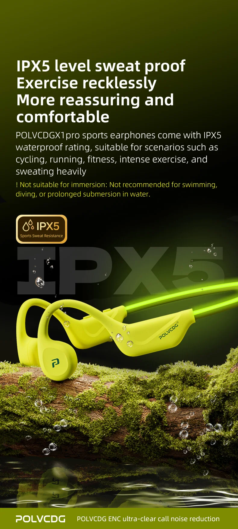 POLVCDGX1pro sports earphones come with IPX5 waterproof rating, suitable for scenarios such as cycling, running, fitness, intense exercise, and sweating heavily