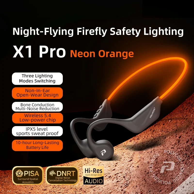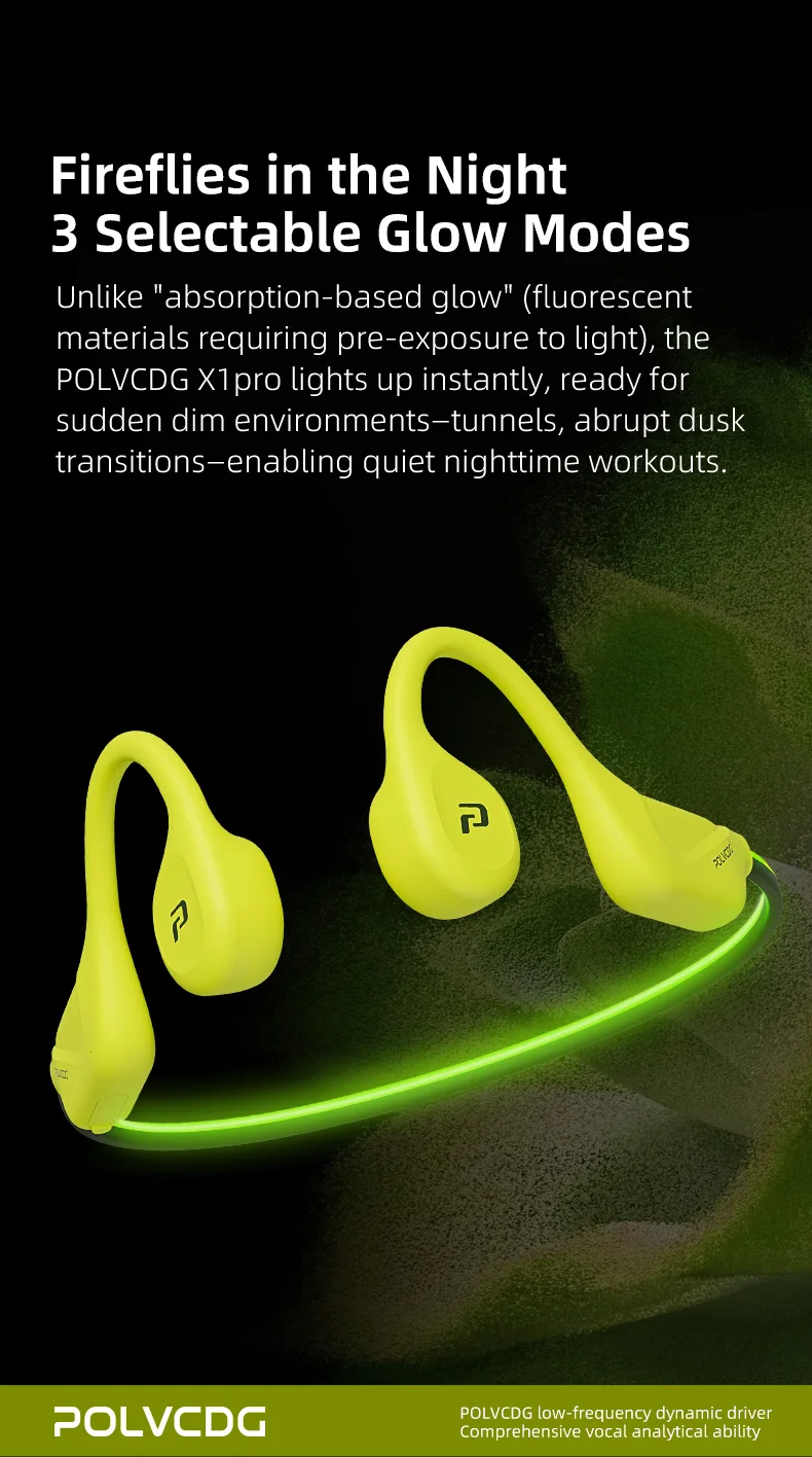 POLVCDG reconstructs the aesthetics of sports safety with two luminous colors: fluorescent green and neon orange. The green light guards the perception of the environment, while the orange light ignites the passion for sports. It achieves a precise balance between immersive music and an open listening range, making every run a concerto of freedom and safety.