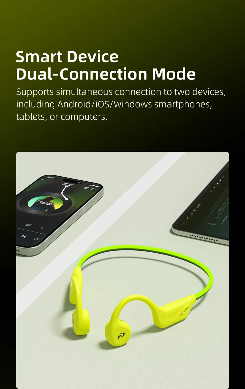 Supports simultaneous connection to two devices, including Android/iOS/Windows smartphones, tablets, or computers.