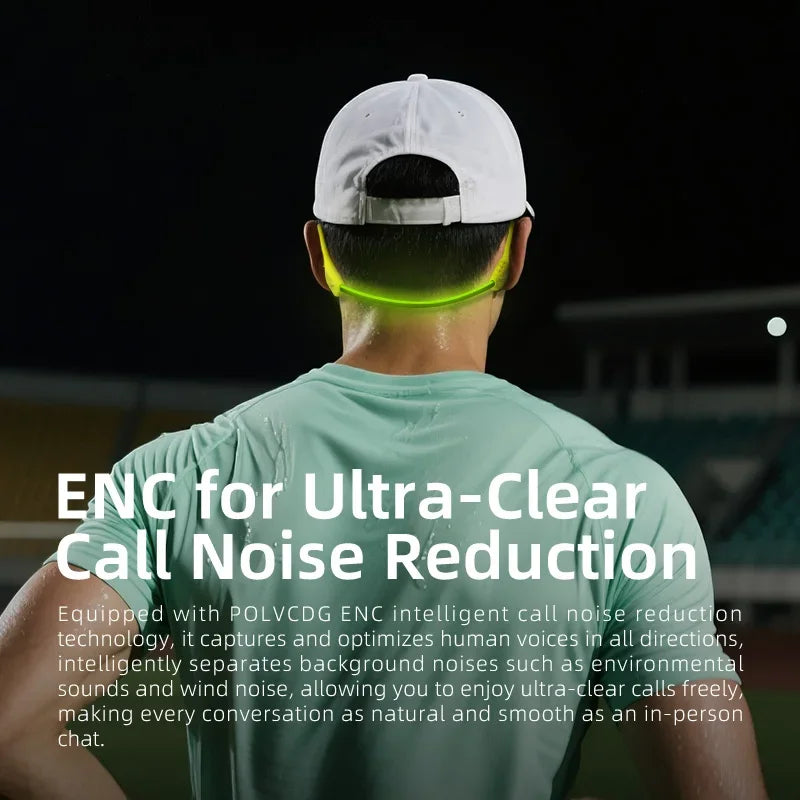 Equipped with POLVCDG ENC Intelligent Call Noise Cancellation Technology, it captures and optimizes human voice in all directions, intelligently separating ambient sounds, wind noise, and other background (interferences), enabling ultra-clear calls for natural, fluid conversations as effortless as face-to-face chats.